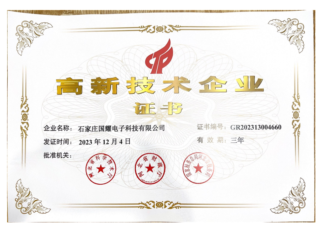石家莊國(guó)耀電子科技有限公司成立于1998年,注冊(cè)資本1000萬(wàn)元,位于石家莊市高新技術(shù)產(chǎn)業(yè)開發(fā)區(qū),是國(guó)家高新技術(shù)企業(yè)和軟件企業(yè)。 公司主要從事各類高頻開關(guān)電源、電力電子產(chǎn)品的開發(fā)與生產(chǎn),先后推出了AC/DC、DC/DC、DC/AC電源系列數(shù)百個(gè)品種,廣泛應(yīng)用于通信、軍事、電力、節(jié)能等多個(gè)領(lǐng)域。 產(chǎn)品技術(shù)居國(guó)內(nèi)先進(jìn)水平,部分居國(guó)內(nèi)先進(jìn)和國(guó)際先進(jìn)水平。